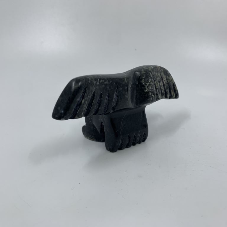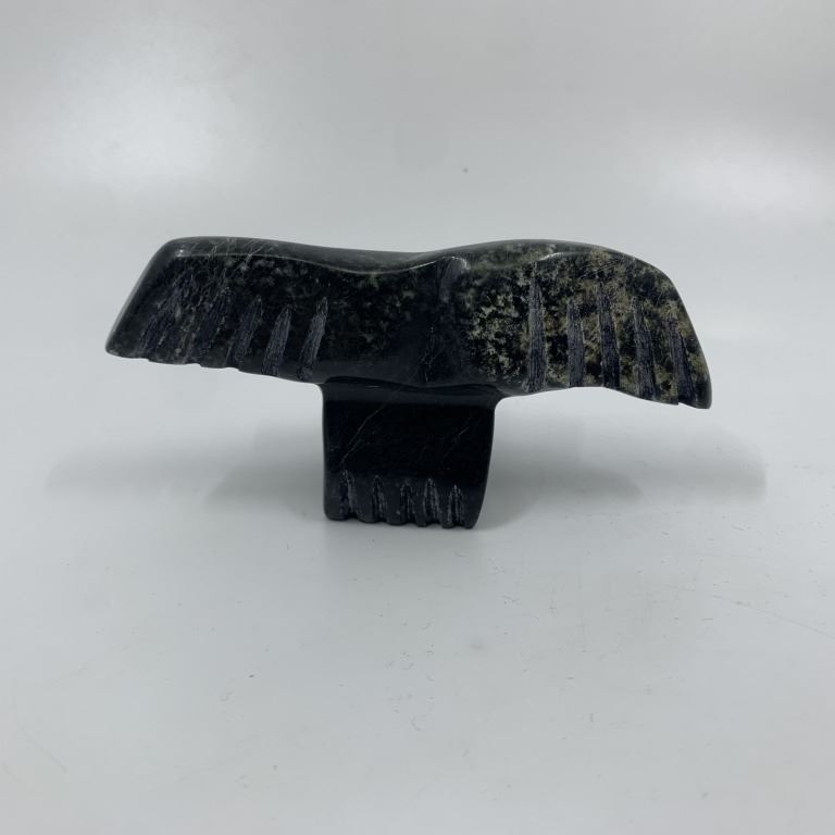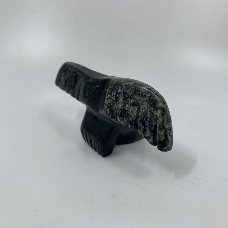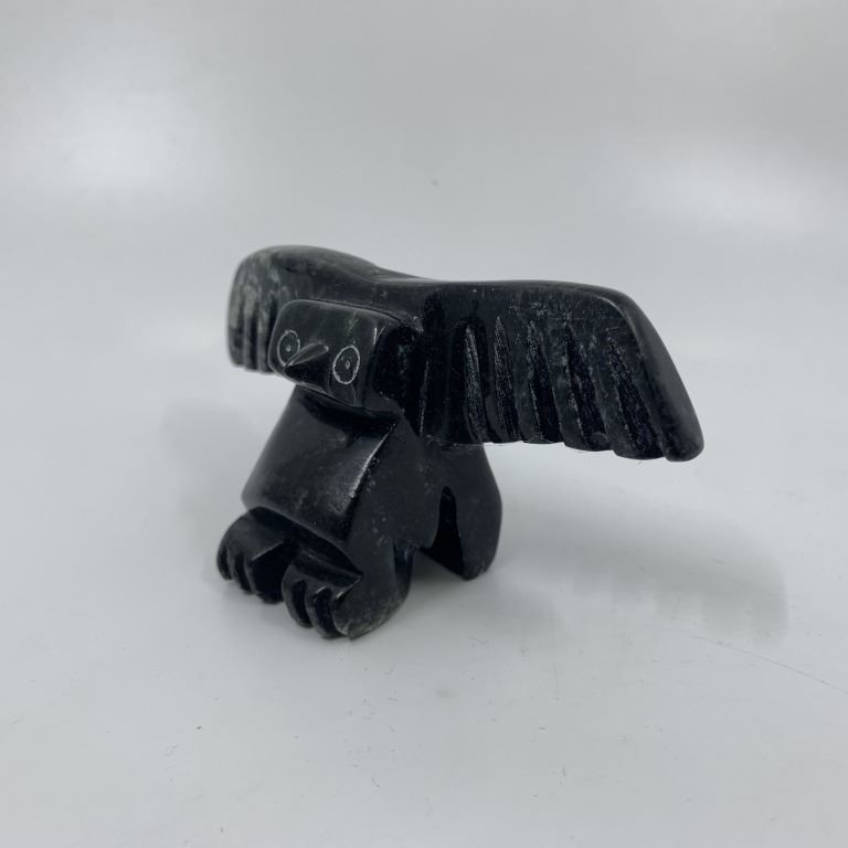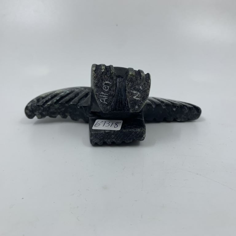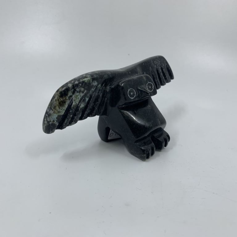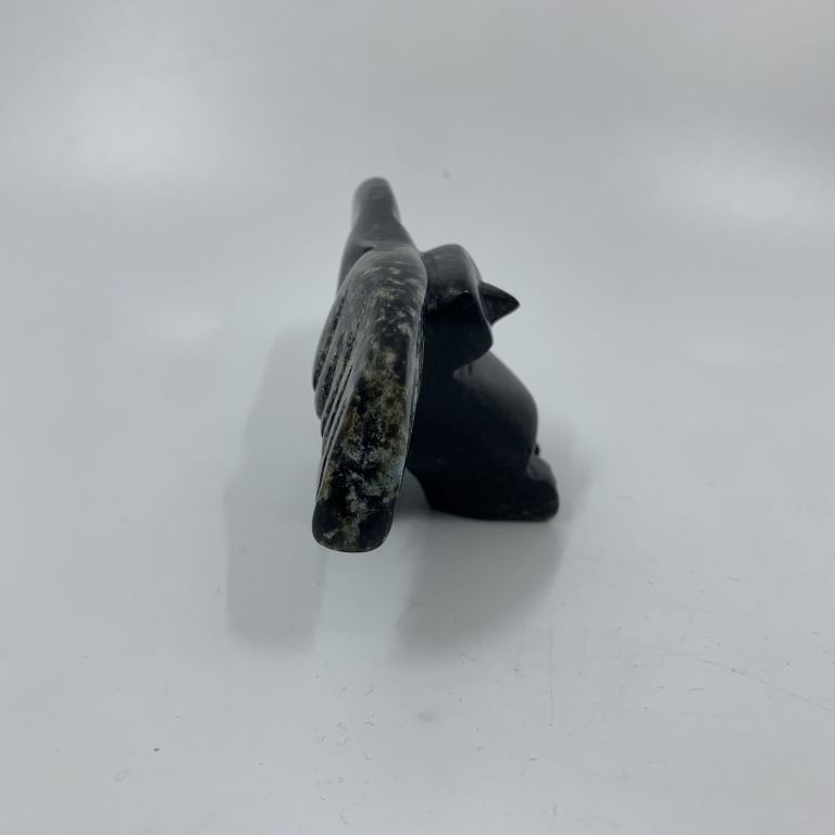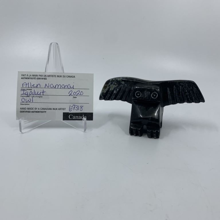 Allen Namonai's "Owl" original aboriginal sculpture. Carved from stone, from the town of Iqualuit in 2020, and included with its certification tag from the government of Canada. This sculpture is in excellent condition without any signs of cracks or damage. 67318