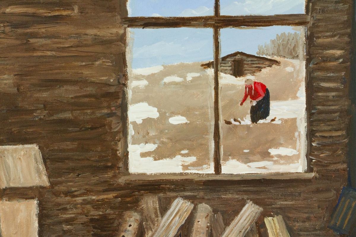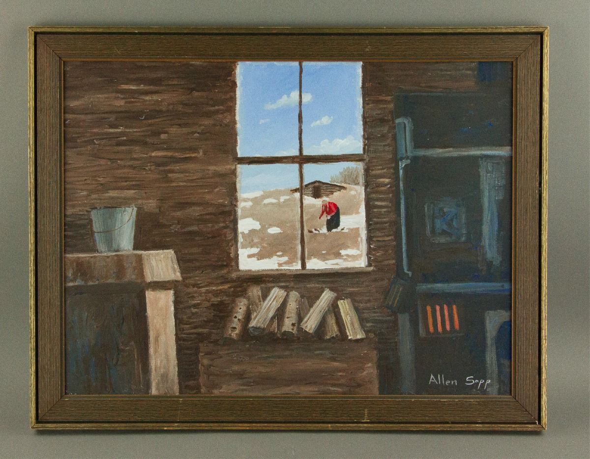 Memory of grandfather; acrylic on canvas; framed; signed Allen Sapp on bottom right; 46.5 cm x 60 cm