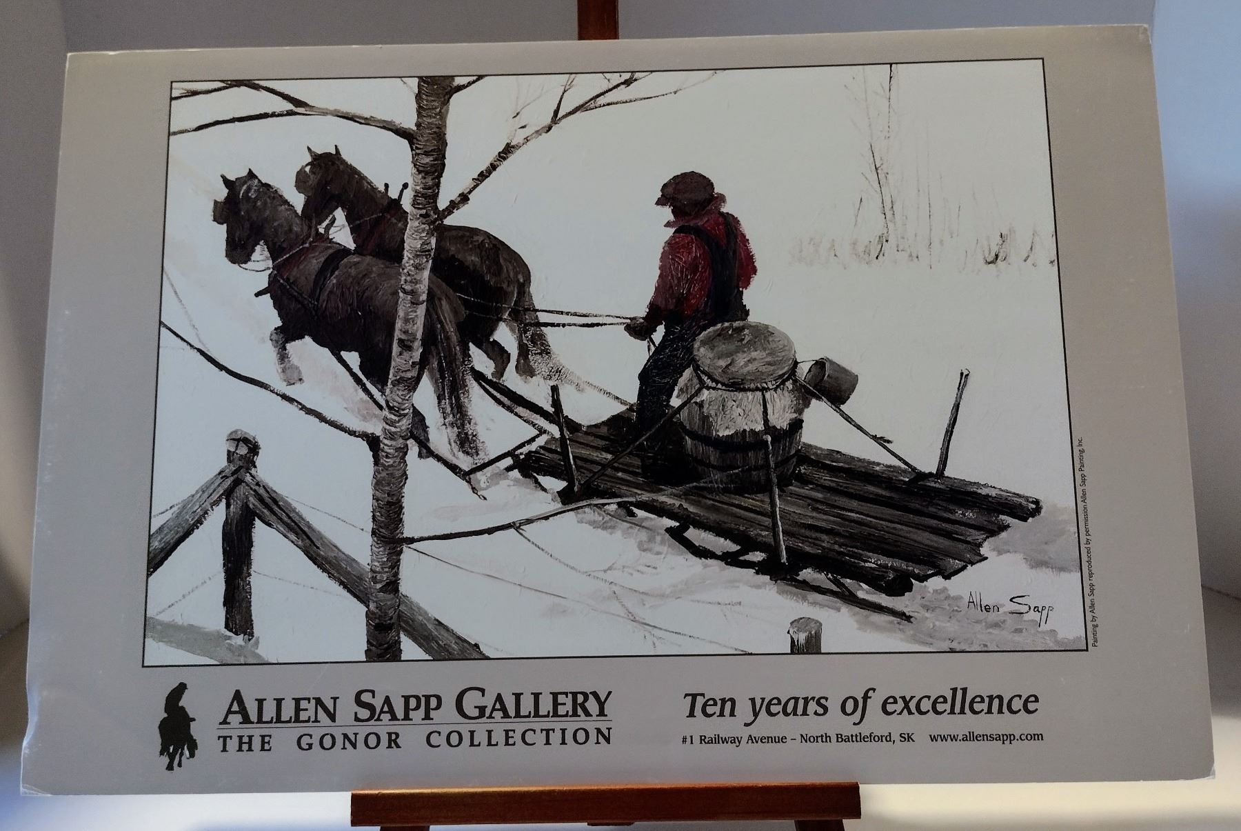 Allen Sapp Gallery – The Gonor collection. Advertising poster on foam core 18 inches in length, 12 inches in width.
