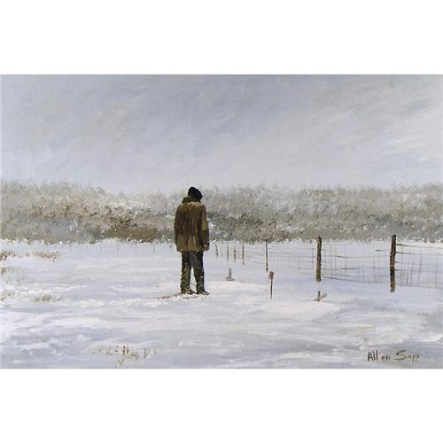[Canadian RCA b. 1929] LOOKING AT MY GRANDMOTHER'S GRAVE; 1971 Acrylic on canvas 24 x 36 in. Signed, titled & dated.