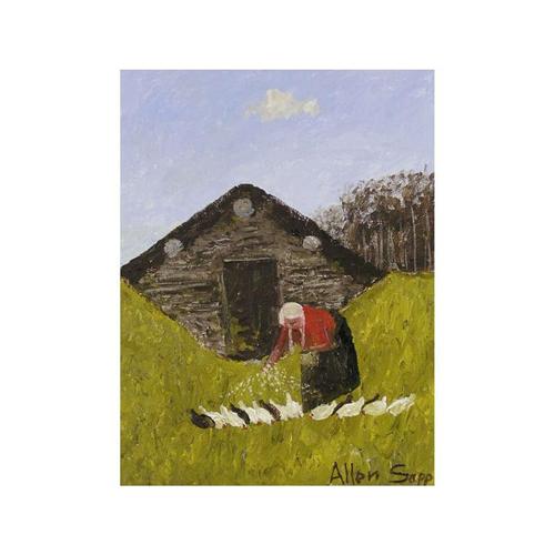 Canadian RCA [b. 1929] NOKUM LOOKING AFTER THE CHICKENS acrylic on canvas 11 x 14 in. (27.9 x 35.6 cm) signed & titled