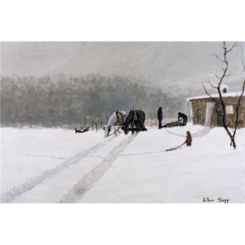 Canadian RCA [b. 1929] HAULING A LOAD OF WOOD HOME FOR WINTER acrylic on canvas 24 x 36 in. (61 x 91.4 cm) signed & titled
