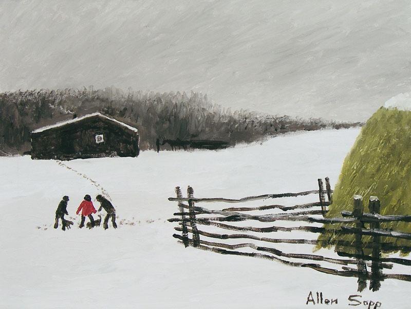 Canadian RCA [b. 1929] CHILDREN PLAYING WITH THE DOG acrylic on canvas 18 x 24 in. (45.7 x 61 cm) signed & titled
