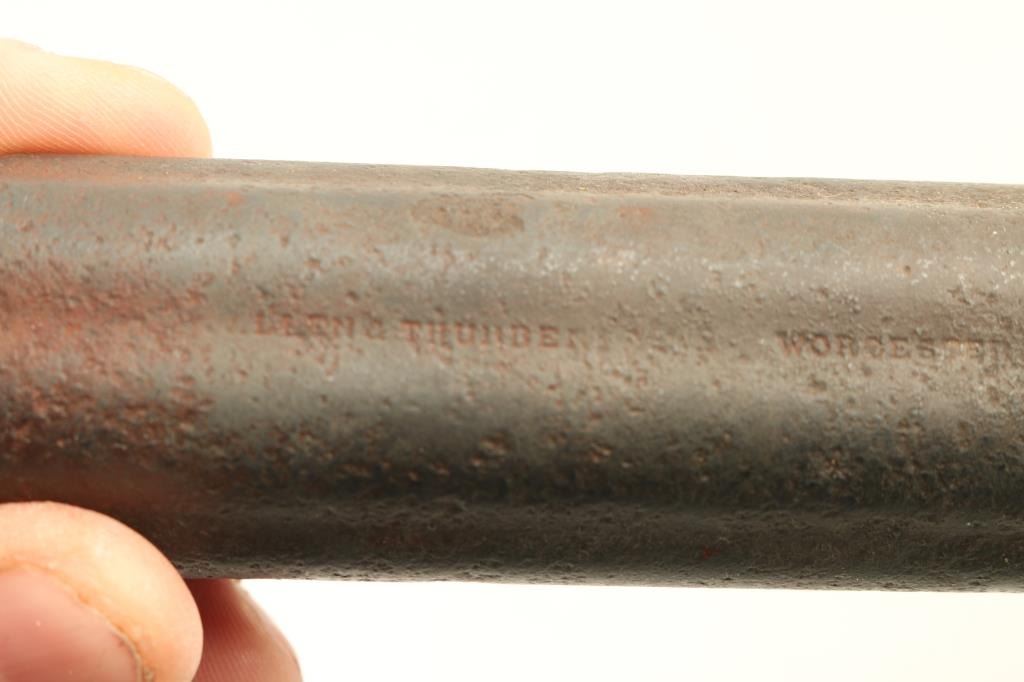 FAIR: Some major parts replaced; minor replacement parts may be required; metal rusted, may be lightly pitted all over, vigorously cleaned or re-blued; rounded edges of metal and wood; principal lettering, numerals and design on metal partly obliterated; wood scratched, bruised, cracked or repaired where broken; in fair working order or can be easily repaired and placed in working order.