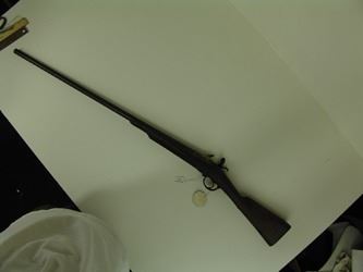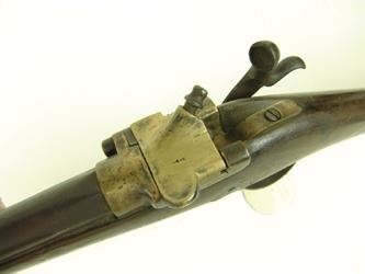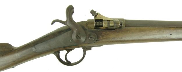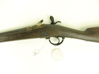 Rare (#310 of 500 or less) 50 caliber, trap door converted rifle with brass action, 33" barrel, and original walnut stock. A rare Civil War piece. Good condition, shows use. S/N 310. Mid 1800s. 51"