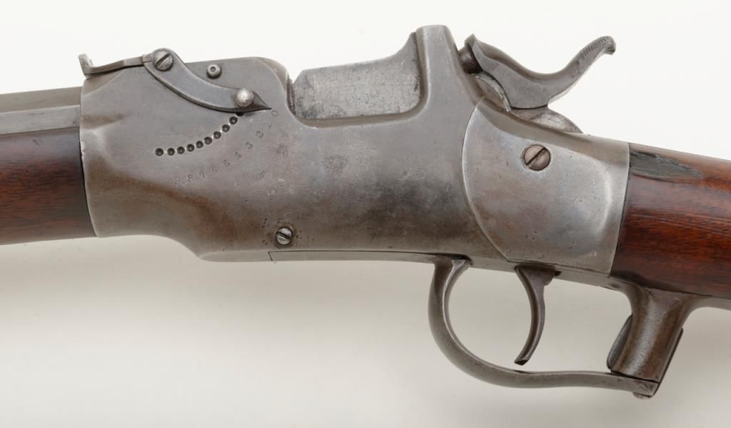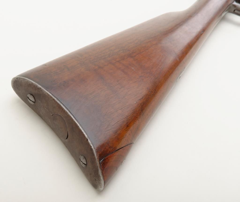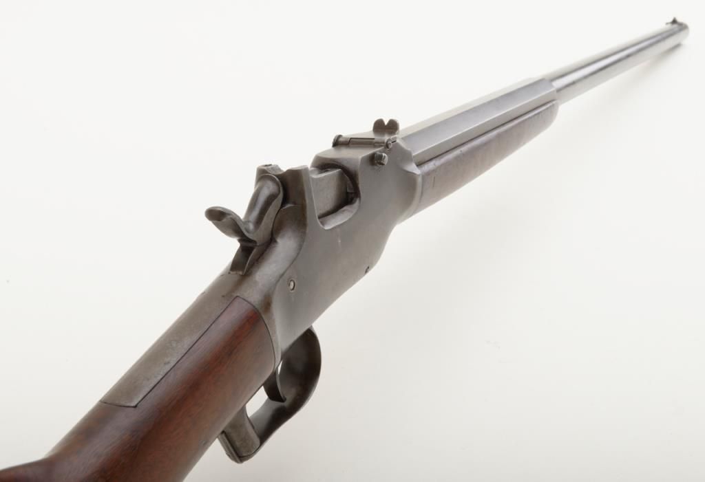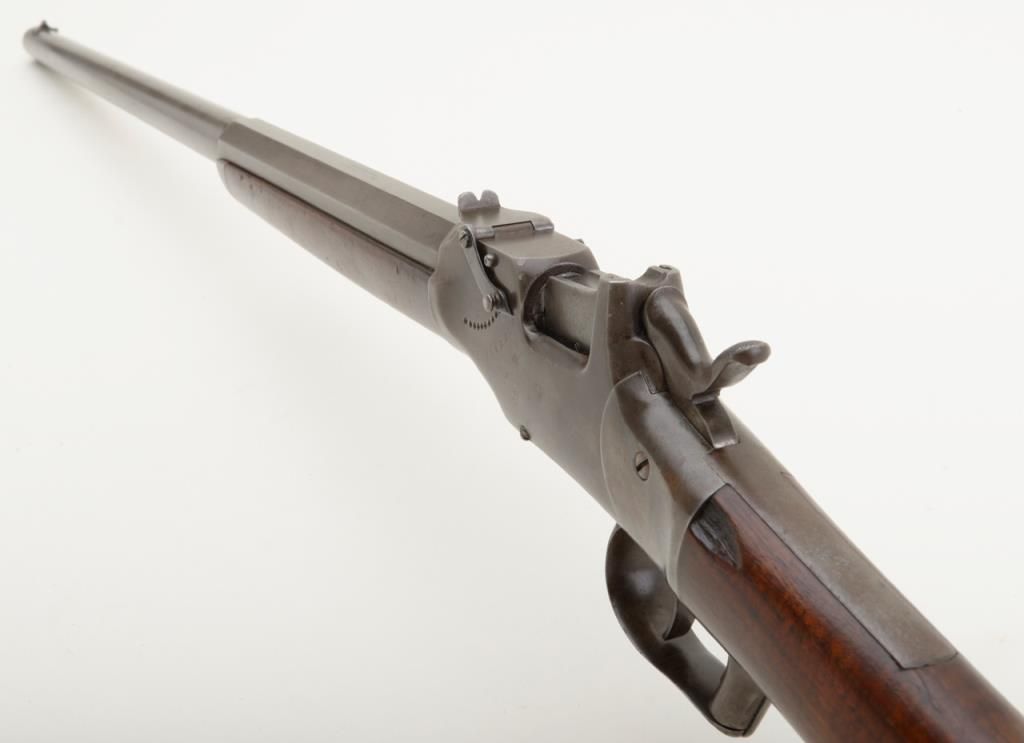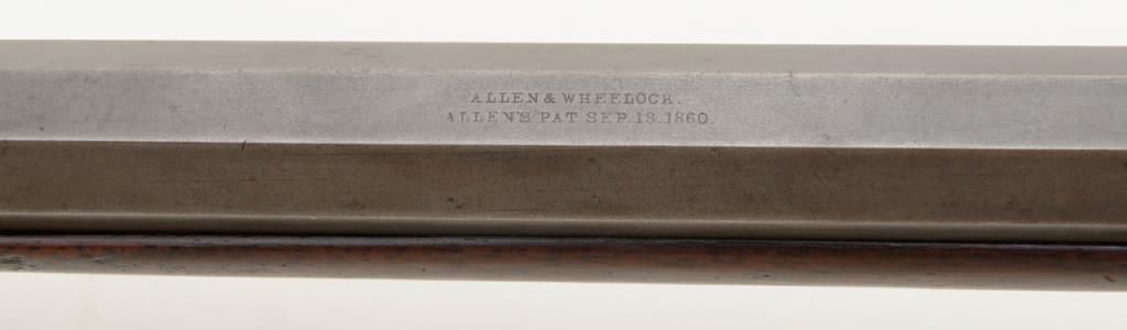 Allen & Wheelock falling block single shot rifle, .41 cal., 26” half round/half octagon barrel, wood stocks, #1130 in overall very good condition showing a brown patina, very good bore, crisp action, good markings, very good wood stocks. (Antique). Est.: $250-$500.