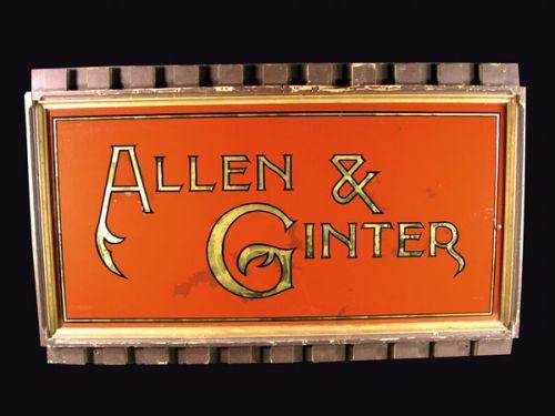 Allen and Ginter Reverse Glass Sign. A great sign that crosses over to Folk Art. Very Good Condition. 45 1/2 X 28 inches.
