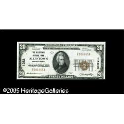 <B>Allentown, PA</B></I> - $20 1929 Ty. 1 <B>The Allentown NB</B></I> Ch. # 1322<BR>The paper surfaces of this note certainly merit the Gem grade, but we feel <B>Choice Crisp Uncirculated</B></I> is a more apt description given the narrowing of the bottom margin at right. Lot:16962