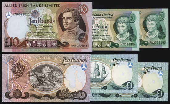 Lot of 3 notes. Belfast, Northern Ireland, Includes Provincial Bank, 1977, £1, P-247a, Choice Unc.; Allied Irish Banks, 1982, £1, P-1a, Choice Unc.; and 1984 £10, P-3b, Unc. to CU, very attractive high grade group of Northern Ireland banknotes, TDLR.