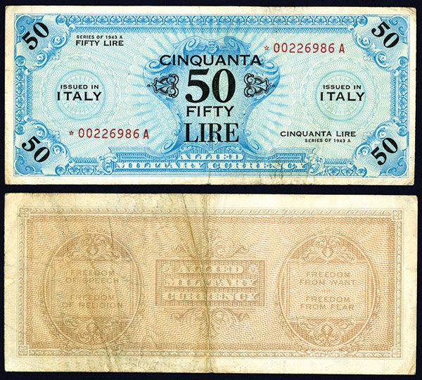 Italy, issued replacement (star) note, 50 Lire, 1943, P-M20a, nice Fine.