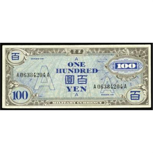 <style type="text/css"> body, td, th { font-family: Arial, Helvetica, sans-serif; font-size: 12px; color: #482424; margin: 0px; padding: 0px; } #header { background-image: url(http://www.bowersandmerena.com/ebay/images/template_v3_01.gif); clear: both; background-color: #590303; border-top-width: 2px; border-top-style: solid; border-top-color: #B38C4F; } #header #header_wrapper { height: 75px; clear: both; width: 800px; margin-right: auto; margin-left: auto; background-image: url(http://www.bowersandmerena.com/ebay/images/template_v3_03.gif); background-repeat: no-repeat; background-position: right; color: #F3EDCC; } #header #header_wrapper #header_logo { float: left; height: 75px; width: 444px; background-image: url(http://www.bowersandmerena.com/ebay/images/template_v3_02.gif); background-repeat: no-repeat; font-size: 10px; text-transform: capitalize; color: #B38C4F; } #header #header_wrapper #header_right { float: left; height: 75px; width: 356px; text-align: right; } #header #header_wrapper #header_right #headerLoginBtn { margin-bottom: 30px; } #header #header_wrapper #header_right input#txtSearch { color: #B49056; border: 1px solid #B49056; width: 175px; padding-top: 3px; padding-right: 3px; padding-bottom: 4px; padding-left: 3px; } #nav { height: 37px; background-image: url(http://www.bowersandmerena.com/ebay/images/template_v3_05.gif); clear: both; } #nav #nav_wrapper { height: 35px; width: 800px; margin-right: auto; margin-left: auto; border-left-width: 1px; border-left-style: solid; border-left-color: #B38C4F; } #nav #nav_wrapper a { padding-right: 15px; padding-left: 15px; border-right-width: 1px; border-right-style: solid; border-right-color: #B38C4F; height: 25px; padding-top: 10px; display: block; float: left; text-decoration: none; font-weight: bold; color: #5D0303; } #nav #nav_wrapper a:hover { color: #B38C4F; } #nav #nav_wrapper #search { float: right; padding-top: 7px; } #nav #nav_wrapper #search #txtSearch { font-family: Arial, Helvetica, sans-serif; font-size: 10px; text-transform: uppercase; color: #D2AE75; border: 1px solid #B38C4F; padding: 3px; } #content_bgd { background-image: url(http://www.bowersandmerena.com/ebay/images/template_v3_09.gif); background-repeat: repeat-y; background-position: center; padding-top: 15px; padding-bottom: 15px; background-color: #FBFBDB; } #content_wrapper { clear: both; height: auto; width: 800px; margin-right: auto; margin-left: auto; } .LotDetailWhite { line-height:normal; font-size:13px; font-family: arial,helvetica,sans-serif; color: White; font-weight: bold; } .LotDetailInformation { line-height:normal; font-size: 13px; font-family: arial,helvetica,sans-serif; } .LotDetailMessage { line-height:normal; font-size: 13px; font-family: arial,helvetica,sans-serif; color: red; } } tr.HeaderAuctionTitle td { color: #000000; font-weight: bold; padding: 2px; background-image: url(http://www.bowersandmerena.com/ebay/images/template_v3_05.gif); background-repeat: repeat-x; border-bottom-width: 1px; border-bottom-style: solid; border-bottom-color: #B38C4F; } table.AuctionSummary a, table.AuctionSummary a:link, table.AuctionSummary a:visited { color: #0000FF; text-decoration: none; } } td.tableHeaderLeft { border-left-width: 1px; border-left-style: solid; border-left-color: #B38C4F; } td.tableHeaderRight { border-right-width: 1px; border-right-style: solid; border-right-color: #B38C4F; } td.tableCellMiddle { border-left-width: 1px; border-left-style: solid; border-left-color: #B38C4F; border-right-width: 1px; border-right-style: solid; border-right-color: #B38C4F; padding: 5px; } tr.footer td { border-top-width: 1px; border-top-style: solid; border-top-color: #B38C4F; } </style> </head> <body> <div id="header"> <div id="header_wrapper"> <div id="header_logo"> </div> <div id="header_right"> </div> </div> </div> <div id="nav"> <div id="nav_wrapper"> <a href="http://www.bowersandmerena.com">Our eBayLive Auctions</a> <a href="#PaymentInfo">Payment Information</a> <a href="#ShippingInfo">Shipping Information</a> <a href="#About">About Bowers and Merena</a> </div> </div> <div id="content_bgd"> <div id="content_wrapper"> <table width="100%" border="0" cellpadding="5" cellspacing="0" class="AuctionSummary"> <tbody> <tr class="HeaderAuctionTitle" style="height: 25px;"> <td align="left" class="tableHeaderLeft" > </td> <td align="center" class="tableHeaderRight"> <span style="font-size: large;">Lot #1020. Japan. Allied Military Currency, Series A Note.</span> </td> </tr> <tr> <td colspan="3" class="tableCellMiddle"> 100 Yen, VF-VF+, scarce "A" series.