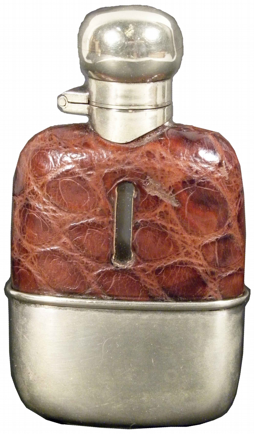 Alligator Covered Silver/Glass 1 Pint Flask. 171 Stamped on bottom. Excellent condition. 4 1/2 inches tall.