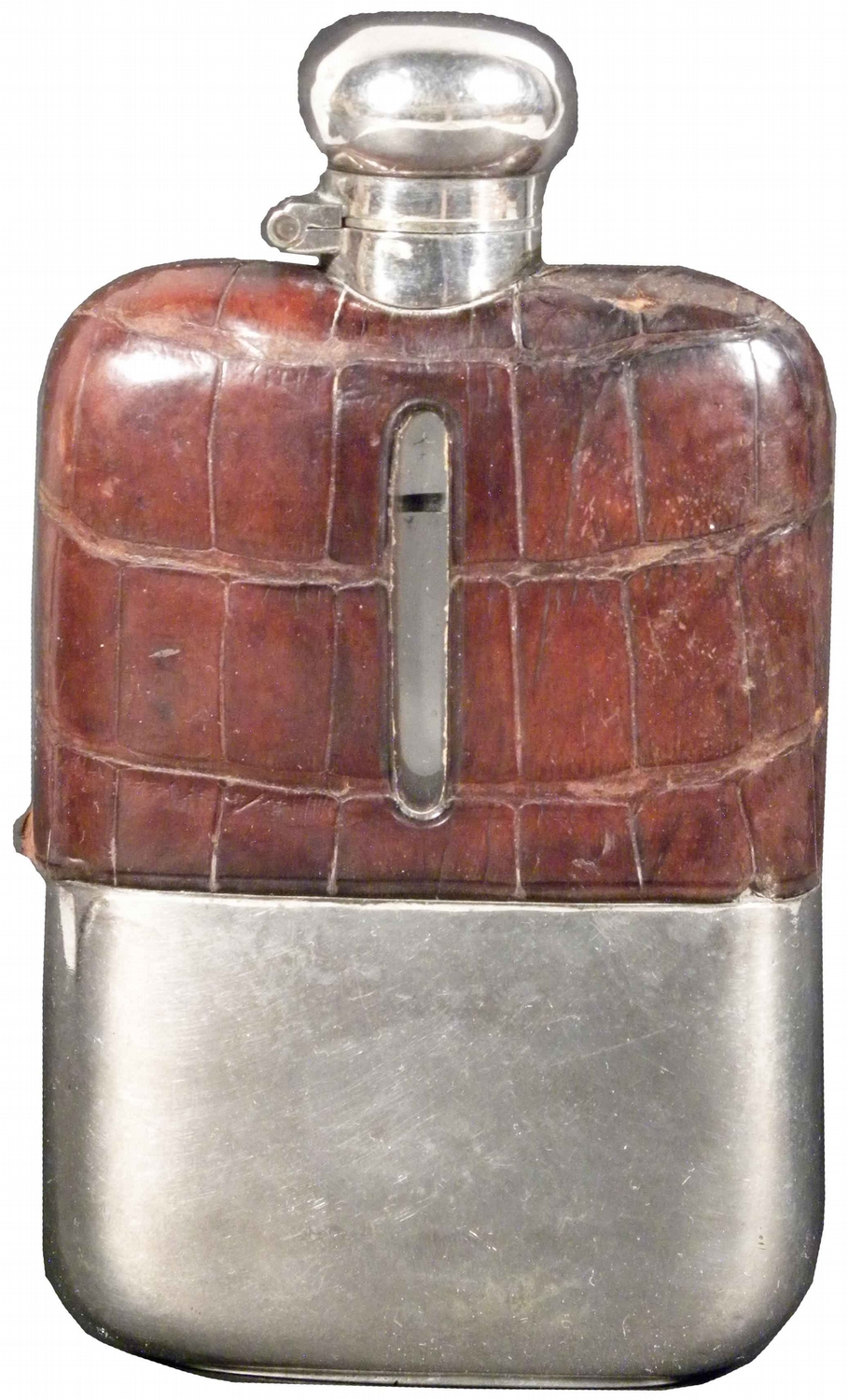Alligator Covered Silver/Glass Flask. Excellent condition. 6 inches tall.