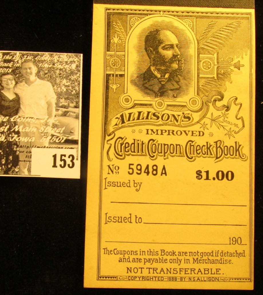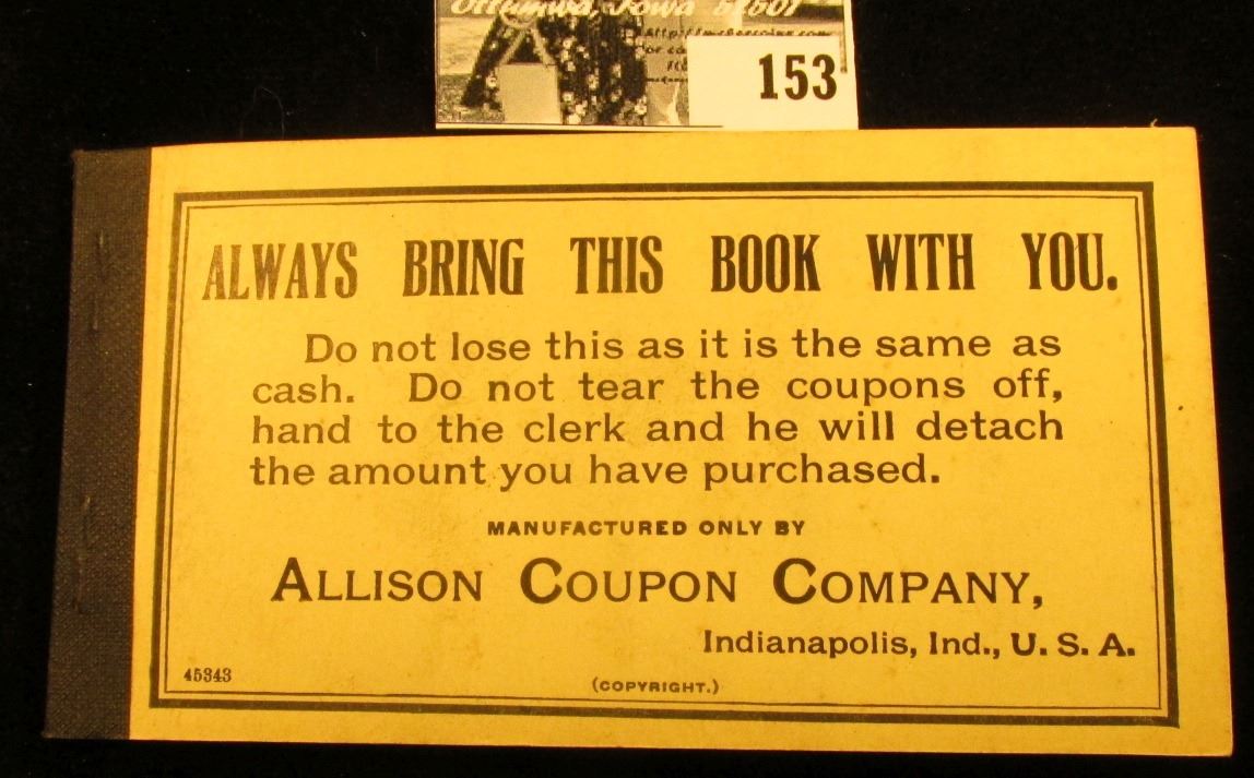 "Allison's Improved Credit Coupon Check Book with Promissory notes for $1.00, 1c, 2c, & 5c. Coupons total $1.00. Near Mint condition.