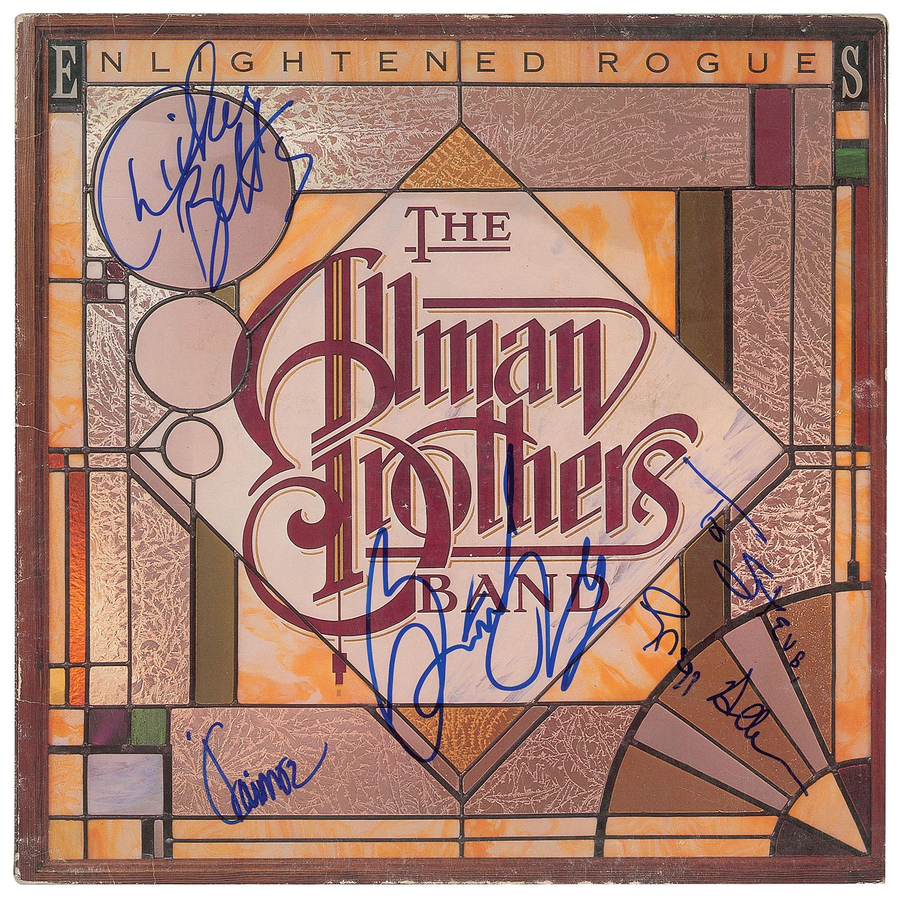 Enlightened Rogues alum by The Allman Brothers, signed and inscribed on the front cover in blue felt tip, "To Steve, Gregg Allman," "Dickey Betts," "Jaimoe," and "Butch Trucks." In fine condition. The record is not included.