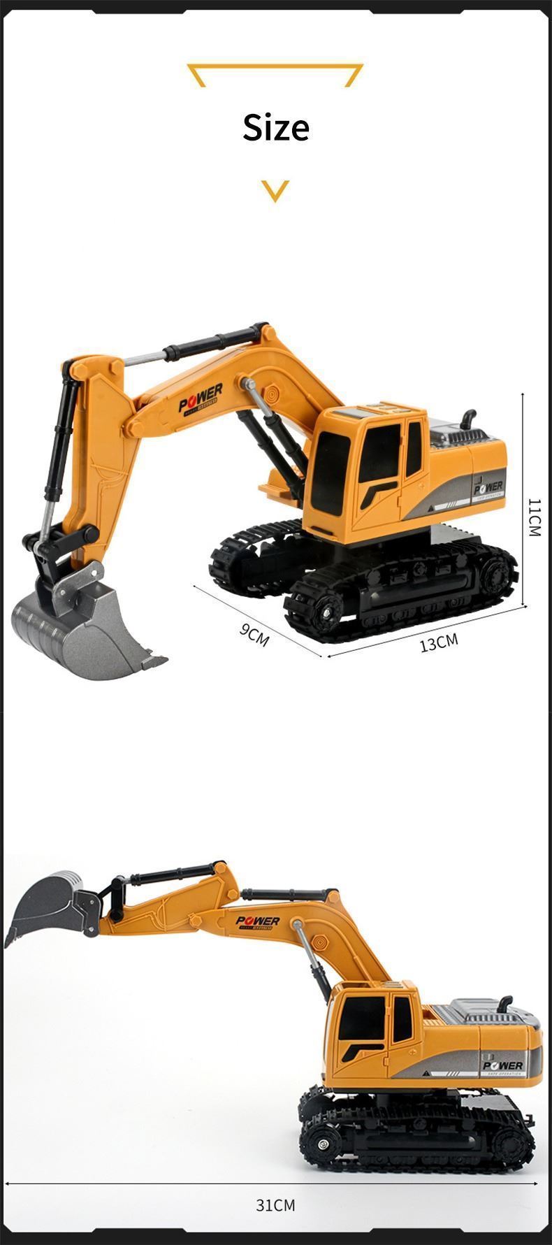 Packaging Dimensions: 11.4 x 5.7 x 4.9 inches Features: This remote-controlled toy excavator, made from alloy, offers 360-degree rotation and a hook that bends up to 90 degrees. Its remote operation allows for full control, and the robust digging bucket ensures powerful performance.**