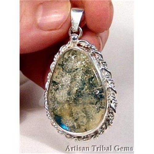 <tr><td>Title:Alluring Blue Amber Sterling Pendant</td></tr>