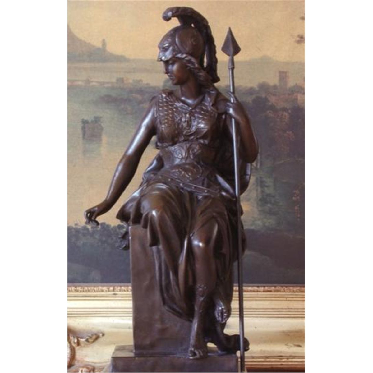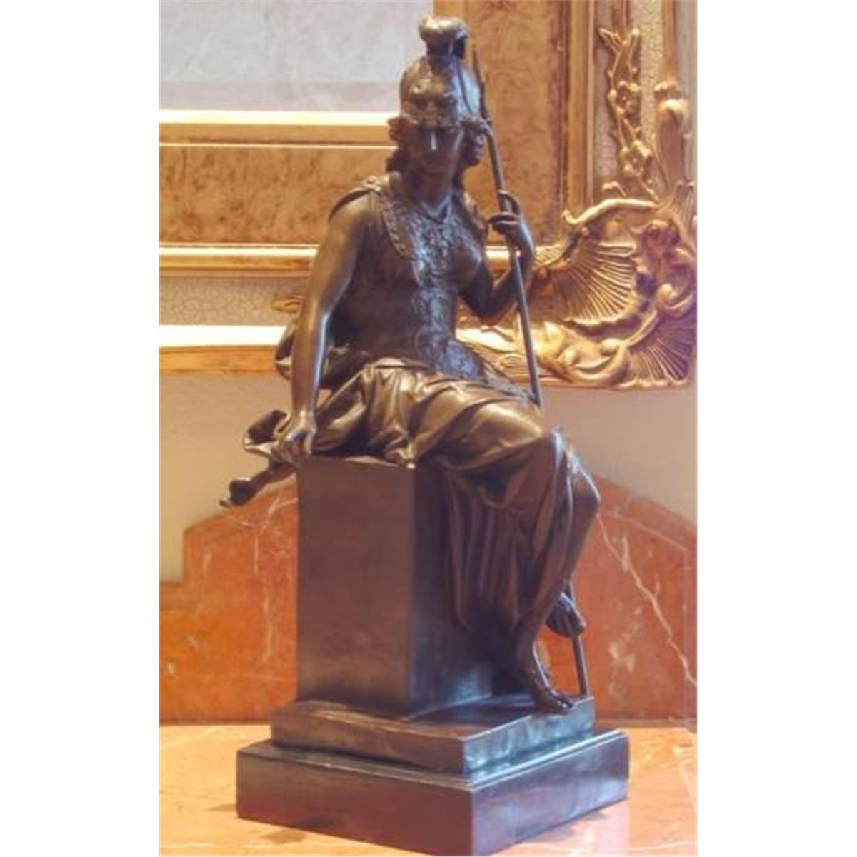 British Military Warrioress Britannia Bronze Sculpture, After Rubin, 17H" x 10"W" x 7"D" 24 lbs. This bronze sculpture was produced using the "Lost Wax" casting method. The"Lost Wax" Cast method is the most precise metal casting technique in existence, ensuring exquisite detail of the original host model which is usually sculpted in clay or wax. This "Lost Wax" casting method is an extremely labor intensive and expensive process, but the end results produce a Heirloom Quality Masterpiece!(Romano-Celtic British) Tutelary Goddess. The genia loci of Britain who first appears on the coinage of Antoninius Pius in the 2nd century AD. She became the symbol of the British Empire after being partly syncretized with the war goddess Minerva."