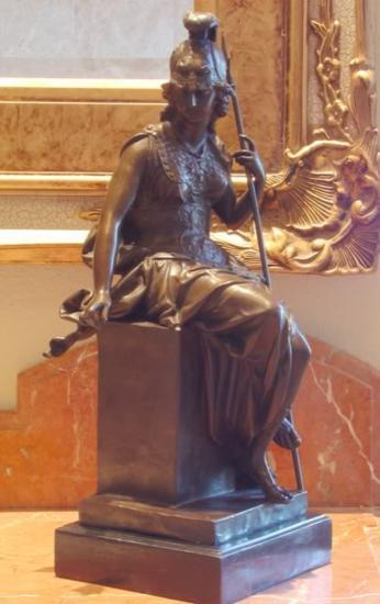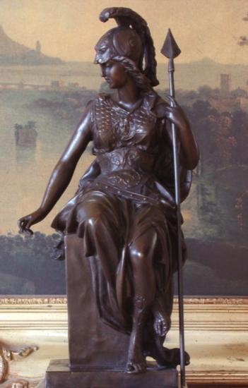 British Military Warrioress Britannia Bronze Sculpture, After Rubin, 17H" x 10"W" x 7"D" 24 lbs. This bronze sculpture was produced using the "Lost Wax" casting method. The"Lost Wax" Cast method is the most precise metal casting technique in existence, ensuring exquisite detail of the original host model which is usually sculpted in clay or wax. This "Lost Wax" casting method is an extremely labor intensive and expensive process, but the end results produce a Heirloom Quality Masterpiece!(Romano-Celtic British) Tutelary Goddess. The genia loci of Britain who first appears on the coinage of Antoninius Pius in the 2nd century AD. She became the symbol of the British Empire after being partly syncretized with the war goddess Minerva."