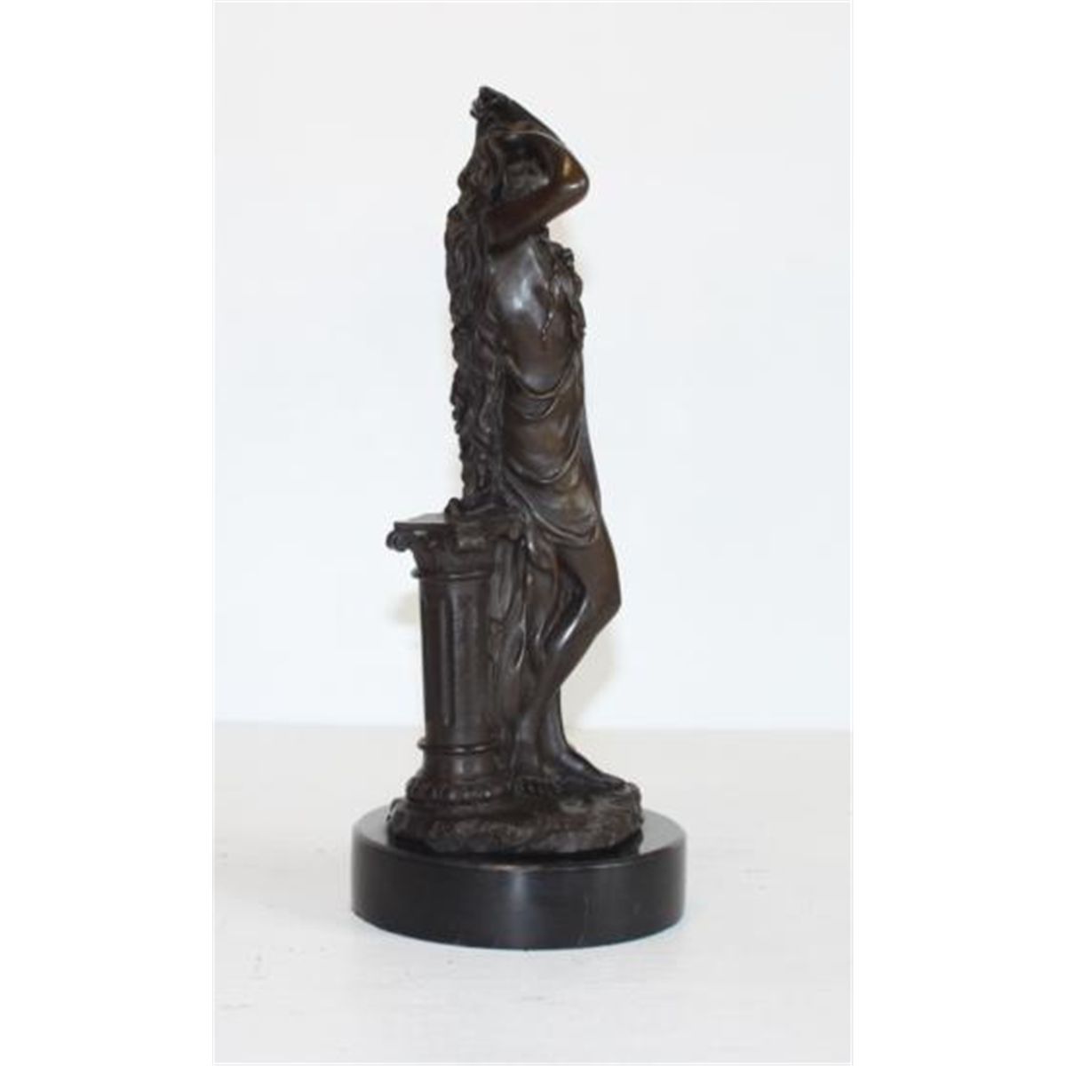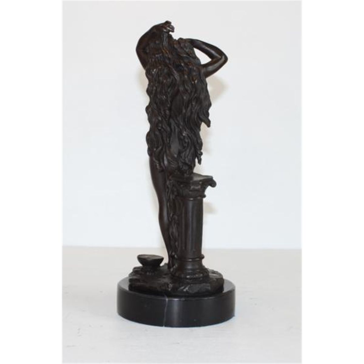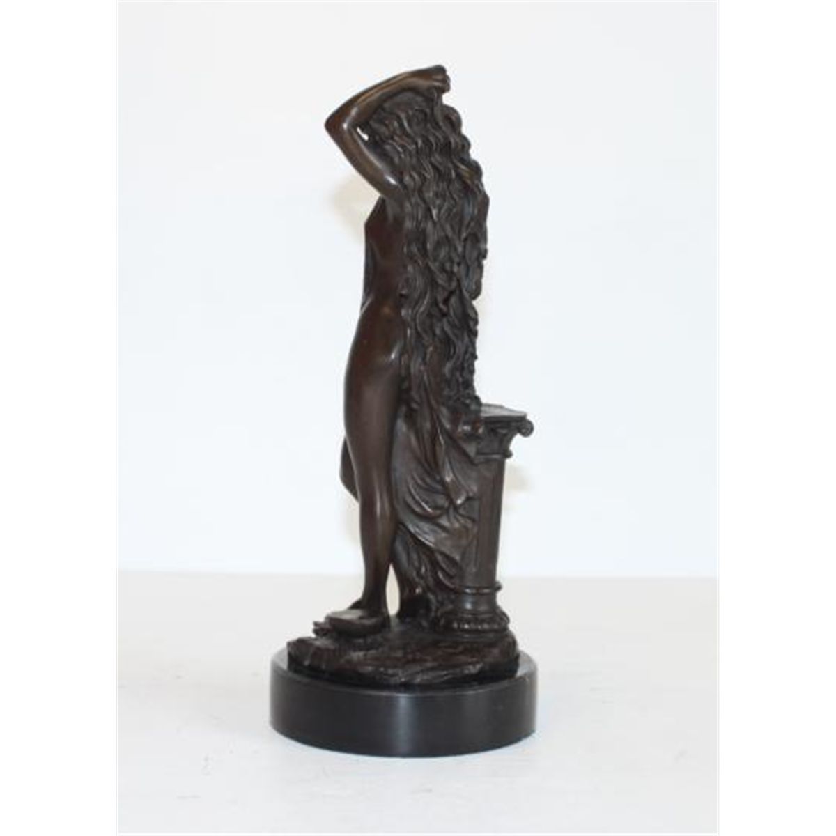 Single Standing Goddess, Bronze Sculpture, After Noee, 12 1/2"H x 5"W x 5D 12 lbs This bronze sculpture was produced using the "Lost Wax" casting method. The"Lost Wax" Cast method is the most precise metal casting technique in existence, ensuring exquisite detail of the original host model which is usually sculpted in clay or wax. This "Lost Wax" casting method is an extremely labor intensive and expensive process, but the end results produce a Heirloom Quality Masterpiece!