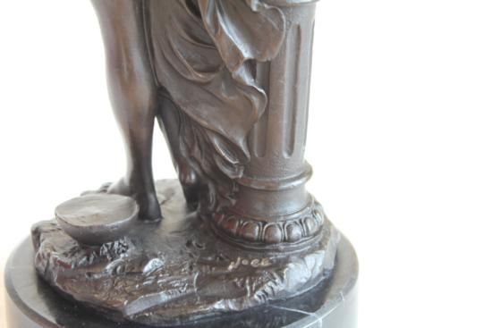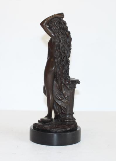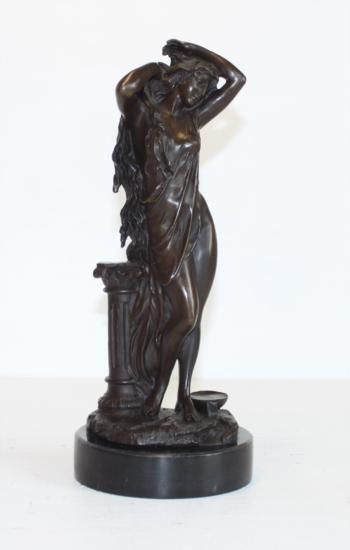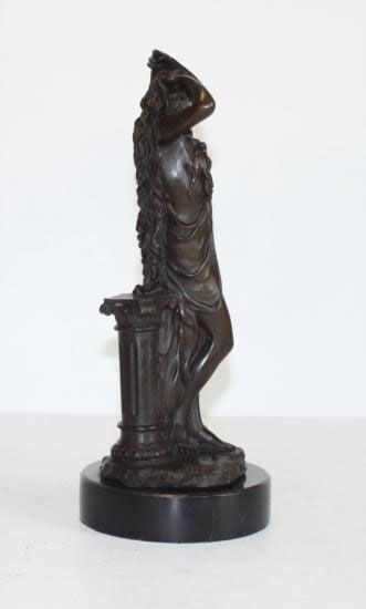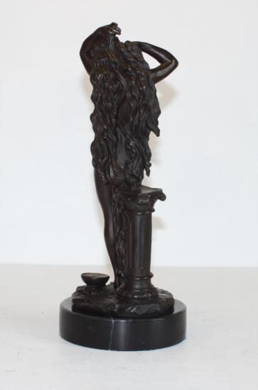 Single Standing Goddess, Bronze Sculpture, After Noee, 12 1/2"H x 5"W x 5D 12 lbs This bronze sculpture was produced using the "Lost Wax" casting method. The"Lost Wax" Cast method is the most precise metal casting technique in existence, ensuring exquisite detail of the original host model which is usually sculpted in clay or wax. This "Lost Wax" casting method is an extremely labor intensive and expensive process, but the end results produce a Heirloom Quality Masterpiece!