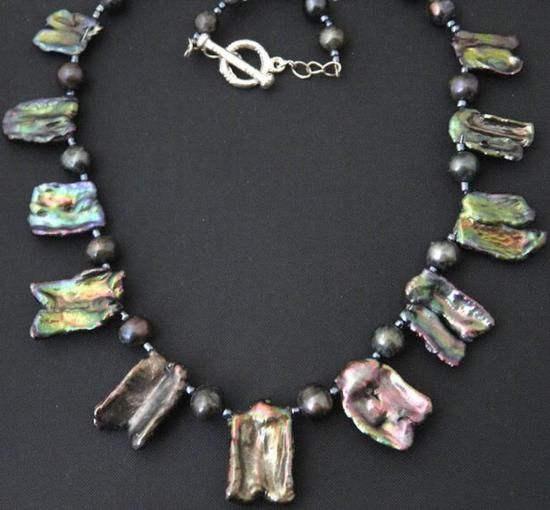 Alluring Iridescent Genuine Large Pearl stick beads necklace, Necklace measures approximately 17.5in.