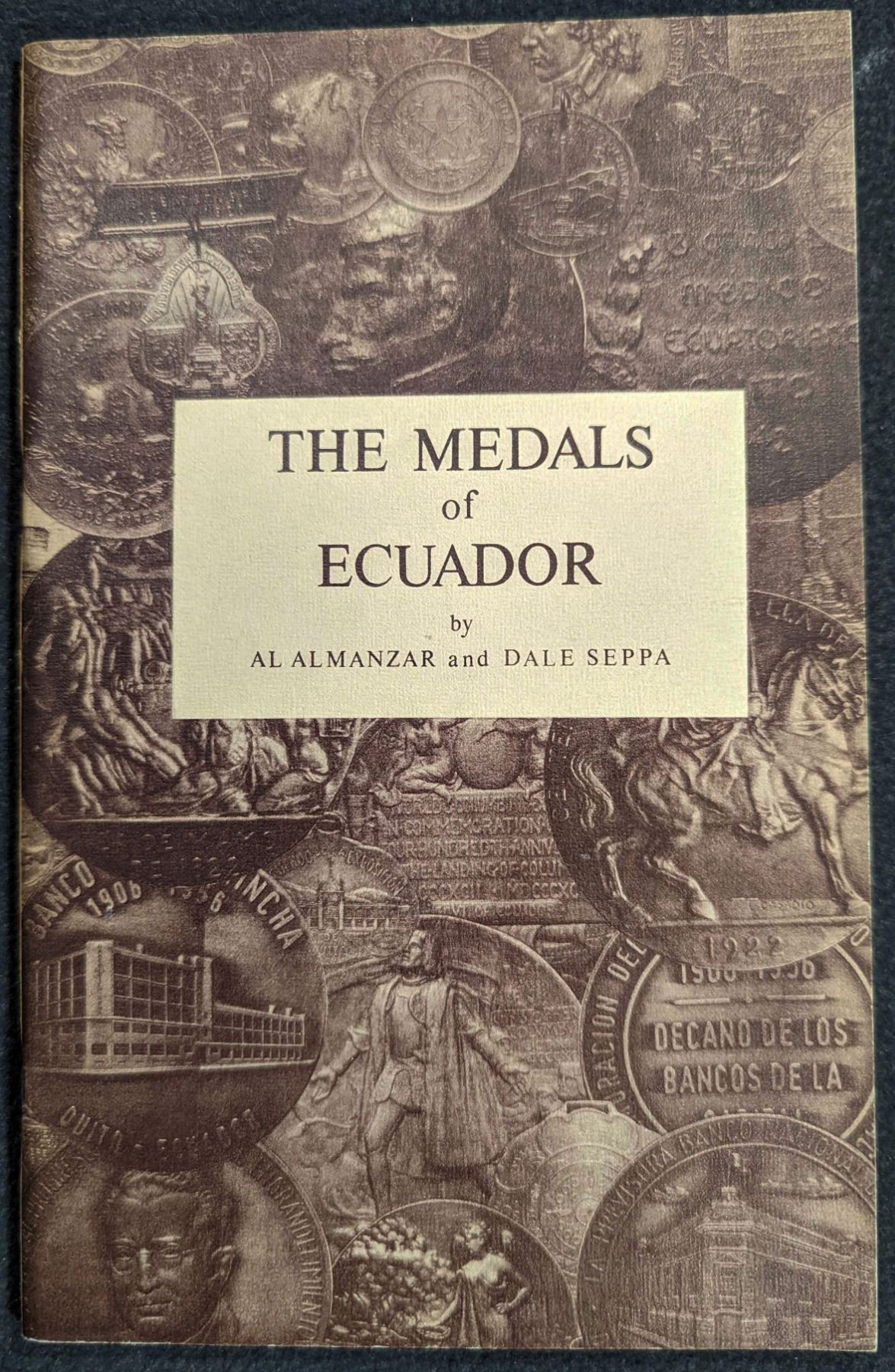 Almanzar, Alcedo F. & Dale Seppa. THE MEDALS OF ECUADOR. Almanzar's Coins of the World. 1972. 12mo. 55 pages. San Antonio. Original pictorial card covers. b&w plated throughout. Fine. This book is a guide to historic, proclamation, and independence medals issued by the country of Ecuador. Each medal is represented by a photo, obverse and reverse details, shape, metal, dimensions, and value information. While the values are out of date the identification information makes this a good reference of medals from Ecuador. Lot weight: 0 lbs 3oz. Subject(s): Ecuadorian Medals.