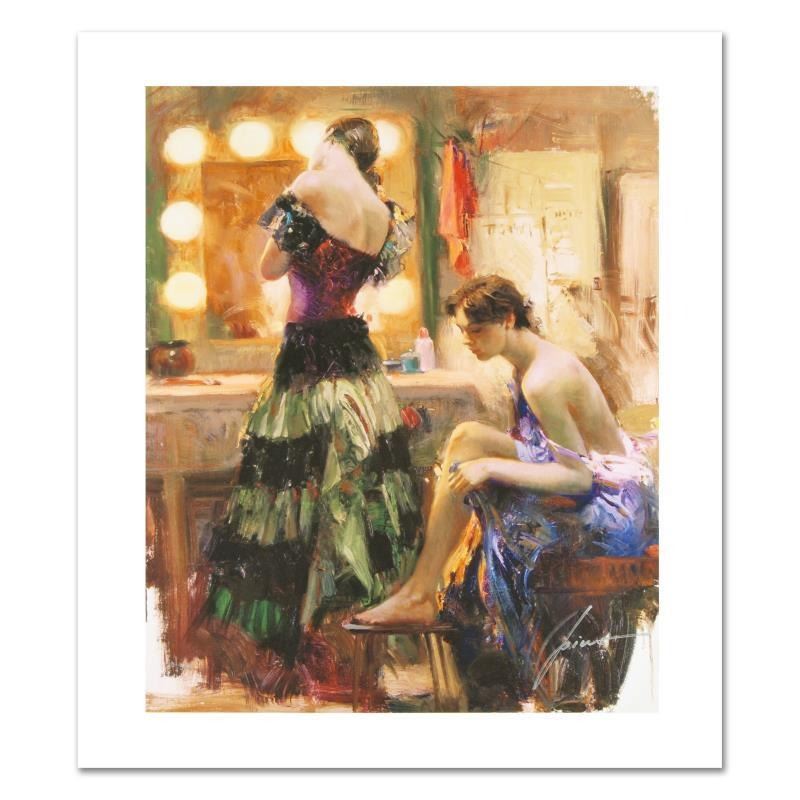 "Almost Ready" is a limited edition giclee on canvas by Pino (1939-2010), numbered and hand signed by the artist. Includes Certificate of Authenticity. Measures approx. 16" x 20" (image).
