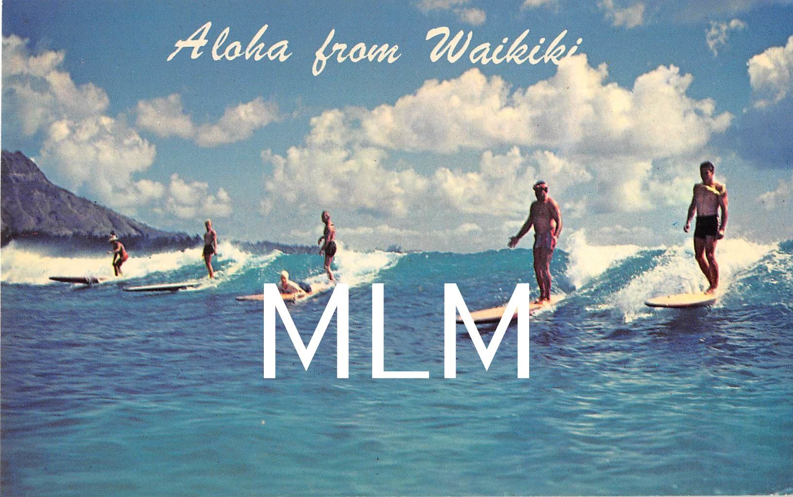Aloha From Waikiki Surfers Riding Wave Postcard