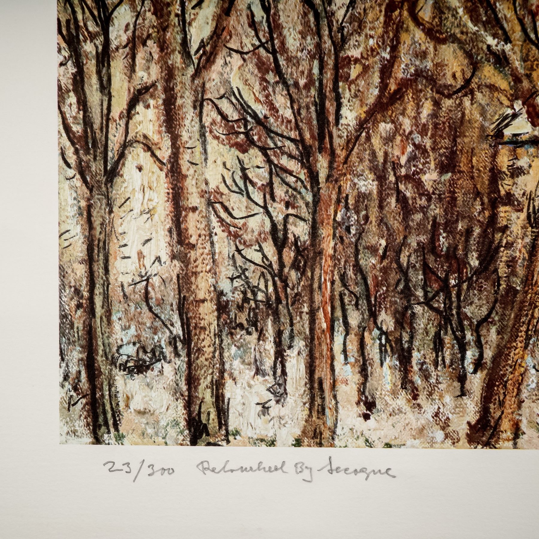 Offered is a striking hand-signed limited edition lithograph on paper by the celebrated Czech artist Alois Lecoque, renowned for his richly textured depictions of historic European cities. This exceptional work presents a sweeping panoramic view of Prague, its spires, domes, and rooftops rendered in Lecoque's characteristic expressive style. Executed with remarkable depth and vibrancy, the lithograph captures the city's timeless beauty, framed by winter trees in the foreground and crowned by the monumental Gothic and Baroque architecture that defines the Prague skyline. The piece is hand-numbered 23/300 and inscribed Retouched by Lecoque, confirming direct involvement of the artist in enhancing the edition. This is both a fine collector's piece and a document of Lecoque's legacy as one of the 20th century's distinguished interpreters of Prague's soul. Signed in graphite lower right.