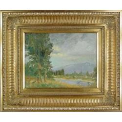 Alonzo Victor Lewis (1886-1946) (Washington) Oil on Board. "Camp On The Bitterroot, Montana." 1928. 11" x 14". signed lower right & verso. Est $2,000 - $3,000.