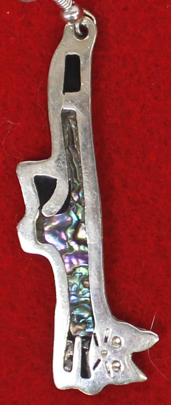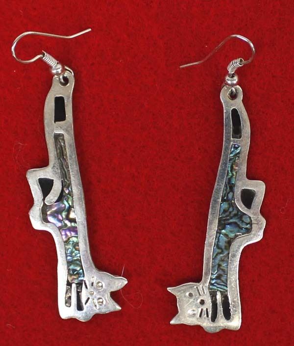 Alpaca Inlay Abalone Cat Earrings, measure 2.75''L which includes the wire
