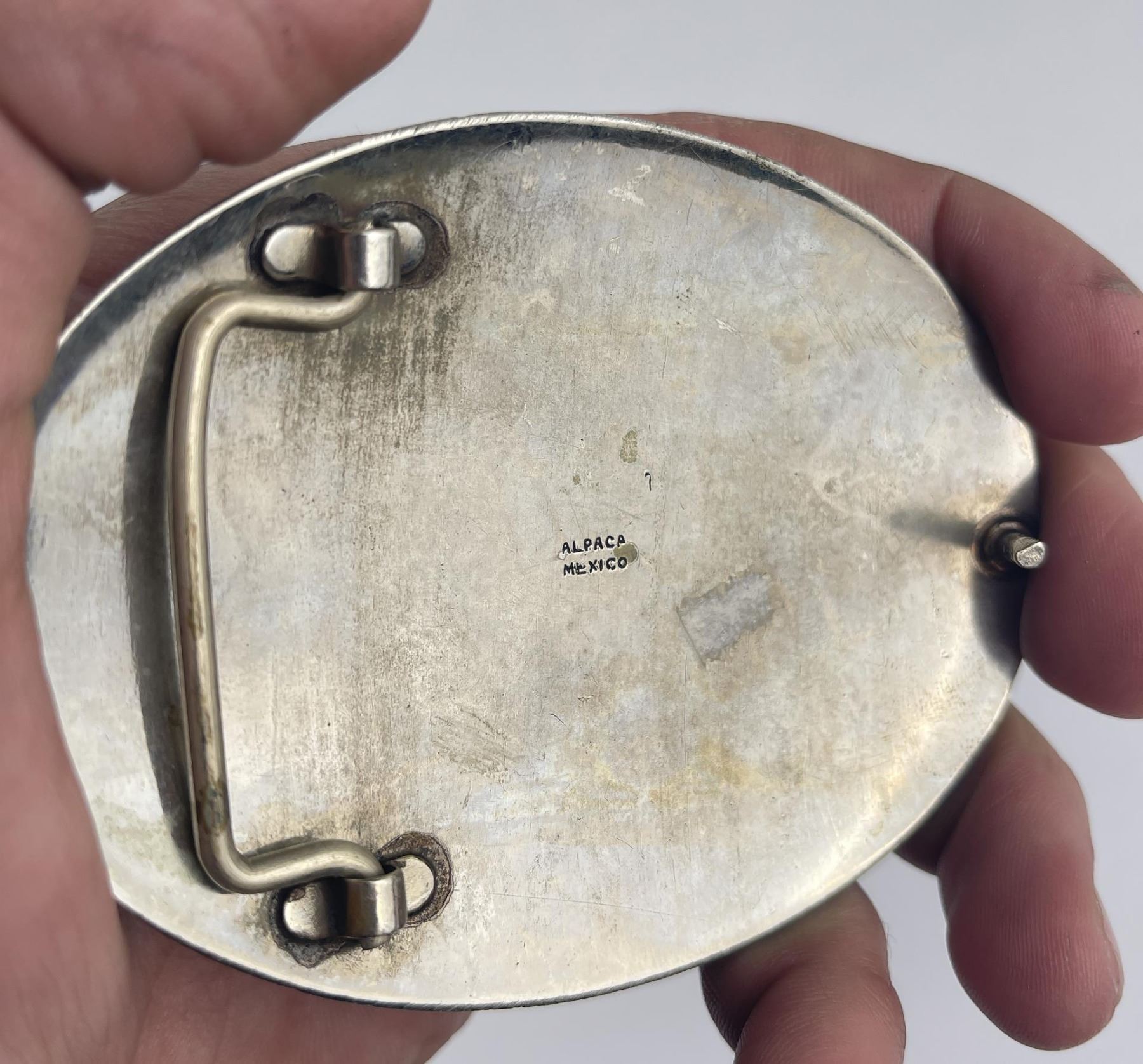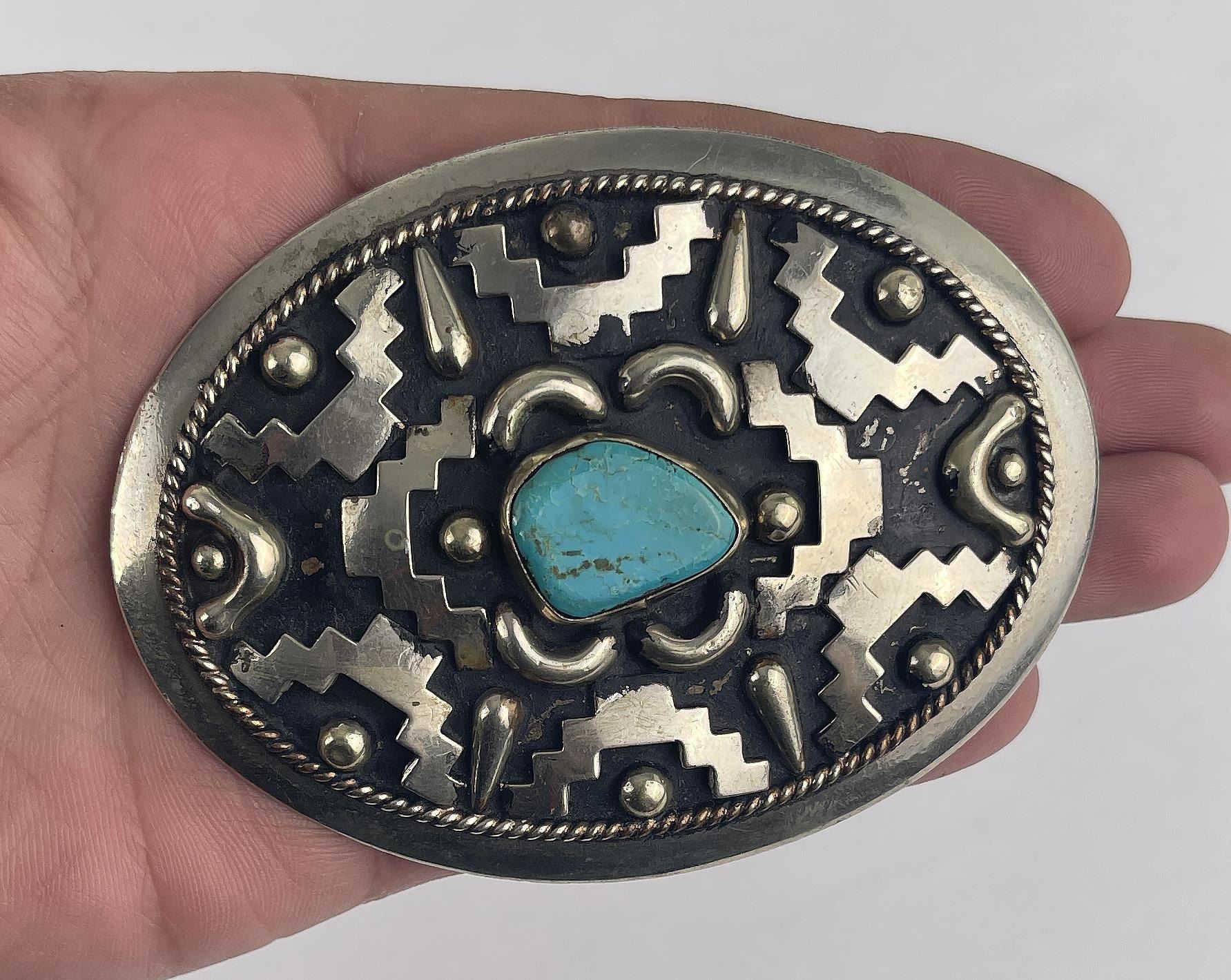 Nice buckle. Set with Turquoise. 3.5" long.