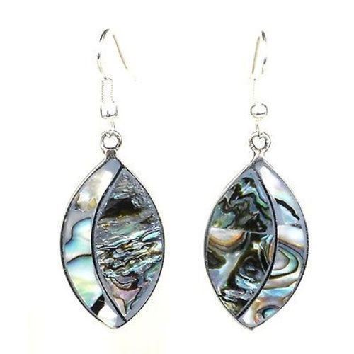 Alpaca Silver Abalone Ellipse Earrings - Artisana **|**|** These alpaca silver earrings from Mexico feature a 1.5 inch inlaid abalone ellipse design #MJEMPE_229030