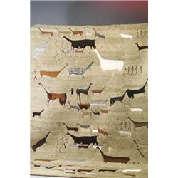 Alpaca and wood room-size rug in with llama motif in shades of brown and gray on a dusty olive ground. 9'7" x 6'6" $800 - 1,200