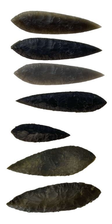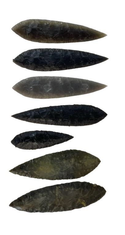 Original set of 6 spear tips used in the Albert Hughes directed prehistorical adventure film 'Alpha' (2018), starring Kodi Smit-McPhee as a young hunter who encounters and befriends an injured wolf during the last ice age, with Jóhannes Haukur Jóhannesson as his father.