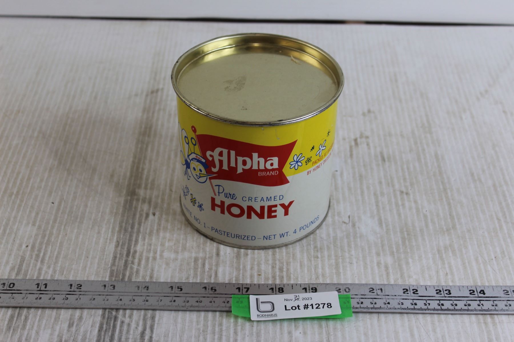 Alpha Brand Pure Creamed Honey Tin - Empty, Unable to Open Lid