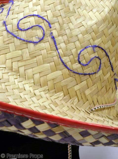 Frankie's (Justin Timberlake) screenworn large straw sombrero. A huge sombrero hat screenworn by Frankie (JUSTIN TIMBERLAKE) in “Alpha Dog!” The hat features a string chinstrap, decorative blue stitching on the dome, purple straw weaved into the brim, and red vinyl piping around the brim. The hat has no size indicated. This genuine movie prop is a unique and distinctive find for true collectors!!