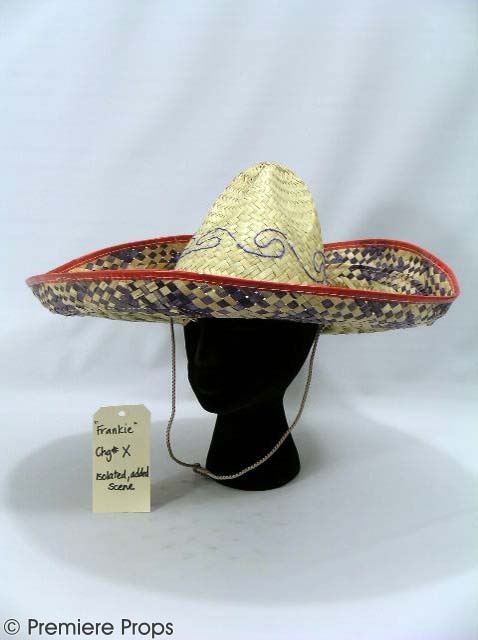 Frankie's (Justin Timberlake) screenworn large straw sombrero. A huge sombrero hat screenworn by Frankie (JUSTIN TIMBERLAKE) in “Alpha Dog!” The hat features a string chinstrap, decorative blue stitching on the dome, purple straw weaved into the brim, and red vinyl piping around the brim. The hat has no size indicated. This genuine movie prop is a unique and distinctive find for true collectors!!
