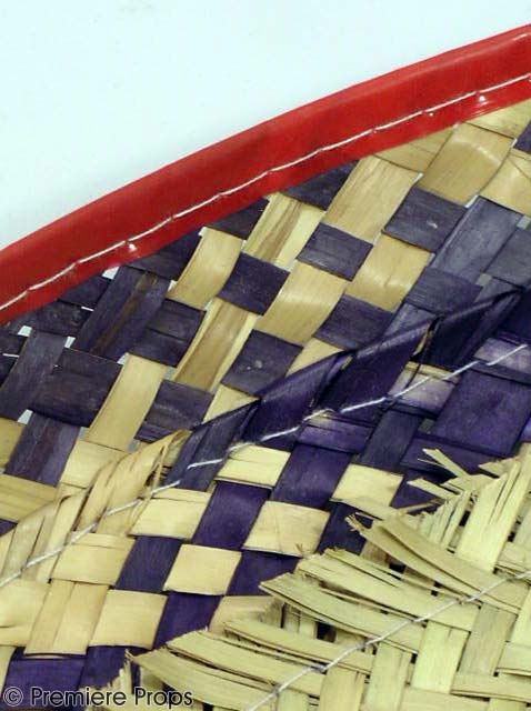 Frankie's (Justin Timberlake) screenworn large straw sombrero.  A huge sombrero hat screenworn by Frankie (JUSTIN TIMBERLAKE) in “Alpha Dog!” The hat features a string chinstrap, decorative blue stitching on the dome, purple straw weaved into the brim, and red vinyl piping around the brim. The hat has no size indicated. This genuine movie prop is a unique and distinctive find for true collectors!!