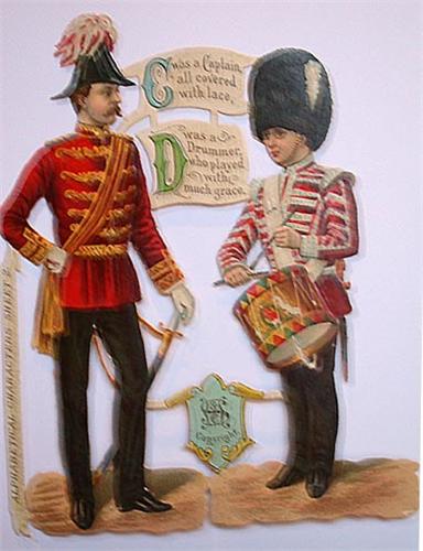 Alphabetical Characters Sheets : 10 (sur 12) pièces réunissant chacune deux (ou 4) lettres. Pièces volantes, +/- 15 x 14 cm (incomplet de EF et GH, excellente condition).