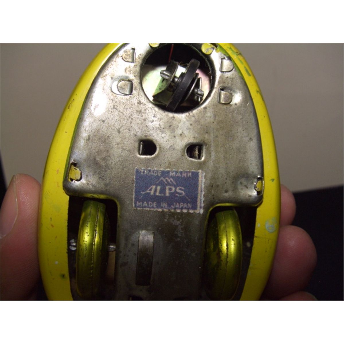Alps tin wind up toy swan and rider holding fishing pole & fish (no Key)