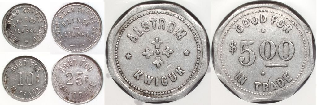 Alstrom / Kwiguk // GF $5.00 IT. VF 35. Aluminum. 35mm. City: KwigukCounty: Wade HamptonState: AKDate: c1927