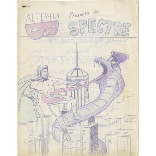 <B>Alter-Ego #2 Fanzine (1962).</B></I> Future legend Roy Thomas dominates this second issue of the seminal fanzine <B>Alter-Ego</B></I>: he drew the cover (featuring a proposed update of the Spectre), pens the most extensive article ("Hail! Hail! The Gang's All Here! Part 1: The All-Winners Squad"), and writes and draws another charming installment of his JLA spoof "The Bestest League of America." The magazine is 30 pages and, we believe, complete. Condition is FN-, in excellent shape overall, but the front cover is almost detached from the staple. Historically, this issue has been even tougher to obtain than the first, so don't miss this rare opportunity!This magazine is not listed in Overstreet.