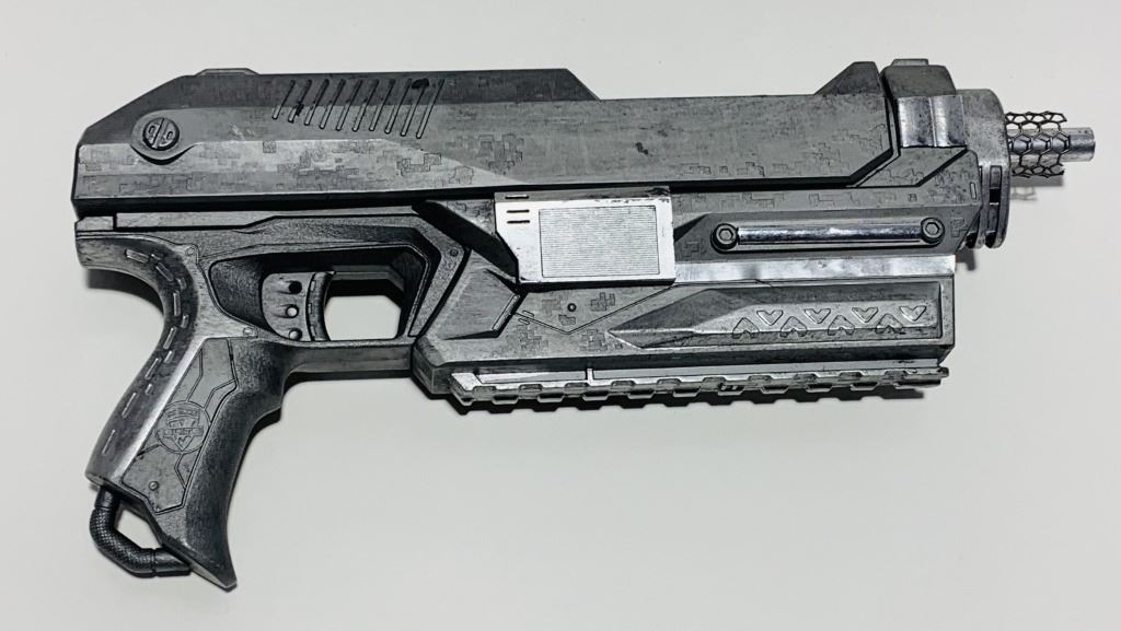 Original gun used in the cyberpunk television series 'Altered Carbon' (2018 - 2020), based on the 2002 novel of the same title by English author Richard K. Morgan.