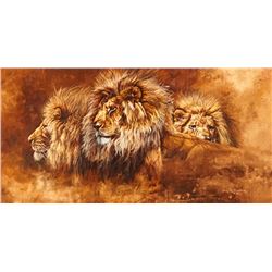 Artist: Gary Swanson | 1941-2010 Title: African Lords Signed l/r: Gary Swanson © '74 Medium: Oil on canvas Dimensions: 20 by 40 inches C...