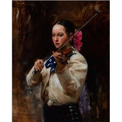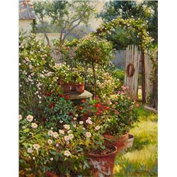 Artist: An He | b. 1957 Title: Lady in Garden Signed l/l: AnHe Medium: Oil on canvas Dimensions: 40 by 30 inches Condition: Good This painting is