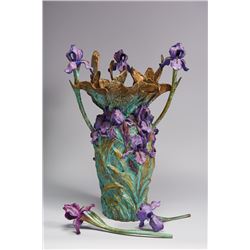 Artist: William Ravencroft Sharles | b. 1940 NSG Title: Fallen Iris Bouquet Vase Inscribed lower edge of vase: Sharles 11/45 '93 [foundry mar...