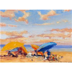 Artist: George Dick | 1916-1978 Title: On the Slopes Signed l/l: George Dick Medium: Oil on panel Dimensions: 14 by 18 inches Condition: Very Good