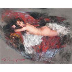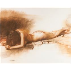 Artist: Ramon Kelley | b. 1939 AAA, AWS, NAWA, NWA, OPA, PSA Title: Day Bed "Nude" Signed l/l: Ramon Kelley © PSA Medium: Pastel on ...
